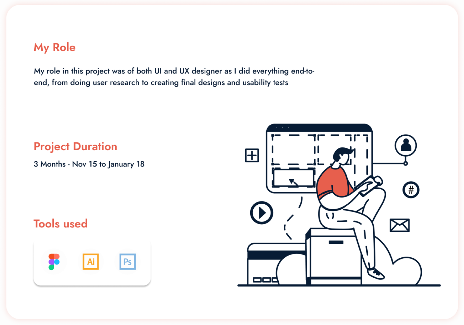 Brand Design, Conducting Interviews, Understanding Empathy, Analyzing Research Data, User Flows and Sitemaps, Mobile Navigation, Low/High Fidelity Prototyping