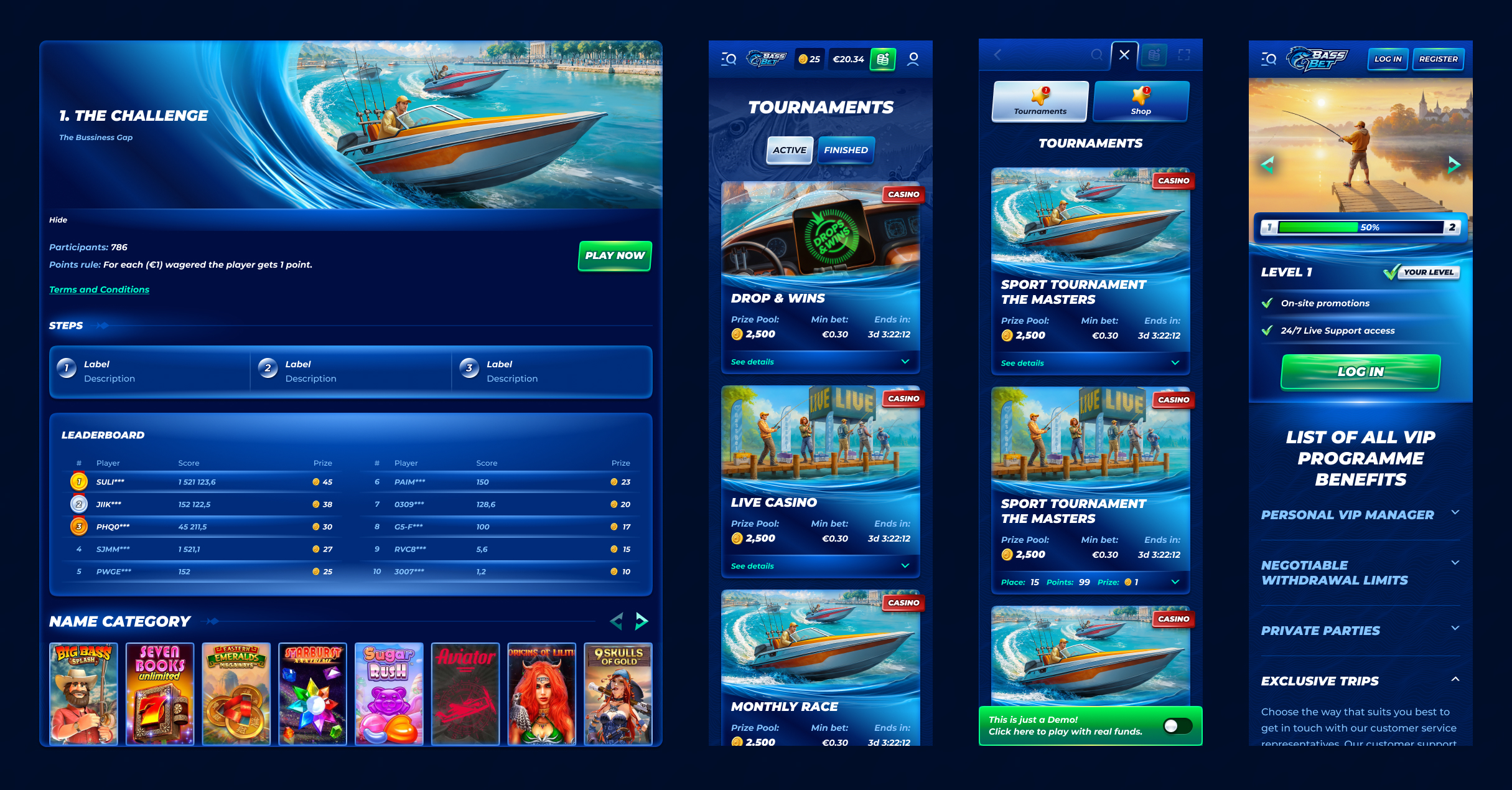 I also rapidly adjusted the design system to support a “Gamification-First” B2B use case, identifying three primary experiences: Curiosity (interactive game guides), Social (high-fidelity badges and animations for VIP level-ups), and Efficiency (centralized atomic components enabling fast deployment of localized skins).
